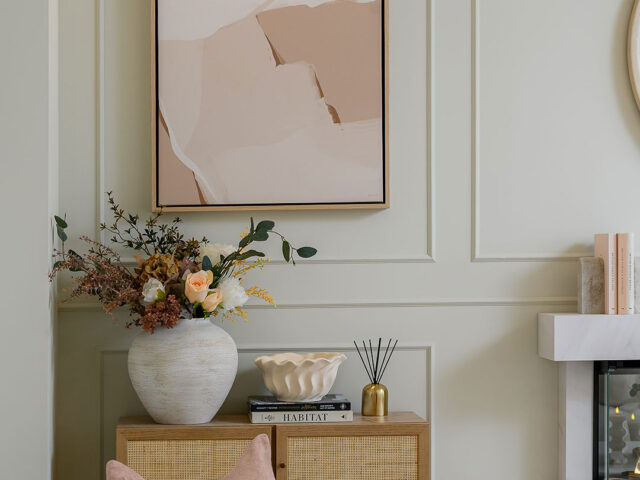 Spring cleaning goes hand-in-hand with spring decorating. Clear out unnecessary items to create a more open and breathable space. Once decluttered, focus on styling surfaces with intention – think a vase of flowers, a stack of books, or a scented candle.