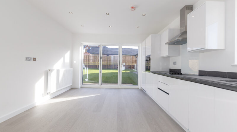 The Hatfield is a spacious home featuring a large open plan kitchen/dining space with separate utility room and bi-fold doors that open onto the private garden.